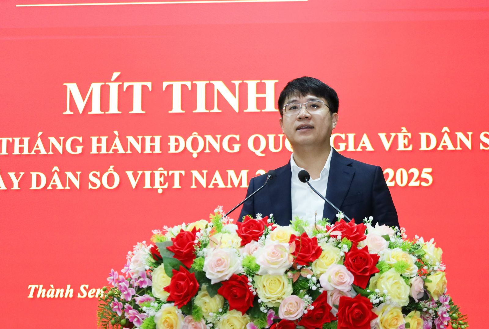 Tại lễ mít tinh, Phó Chủ tịch UBND tỉnh Nguyễn Thị Nguyệt chúc mừng những thành tích và kết quả mà công tác dân số tỉnh nhà đạt được trong thời gian qua. Đồng thời, biểu dương những đóng góp thầm lặng của đội ngũ hơn 2.000 cộng tác viên thôn/tổ dân phố, hơn 300 cán bộ dân số các cấp đã nỗ lực phấn đấu, vượt qua khó khăn để truyền thông, vận động Nhân dân thực hiện tốt chính sách dân số.
